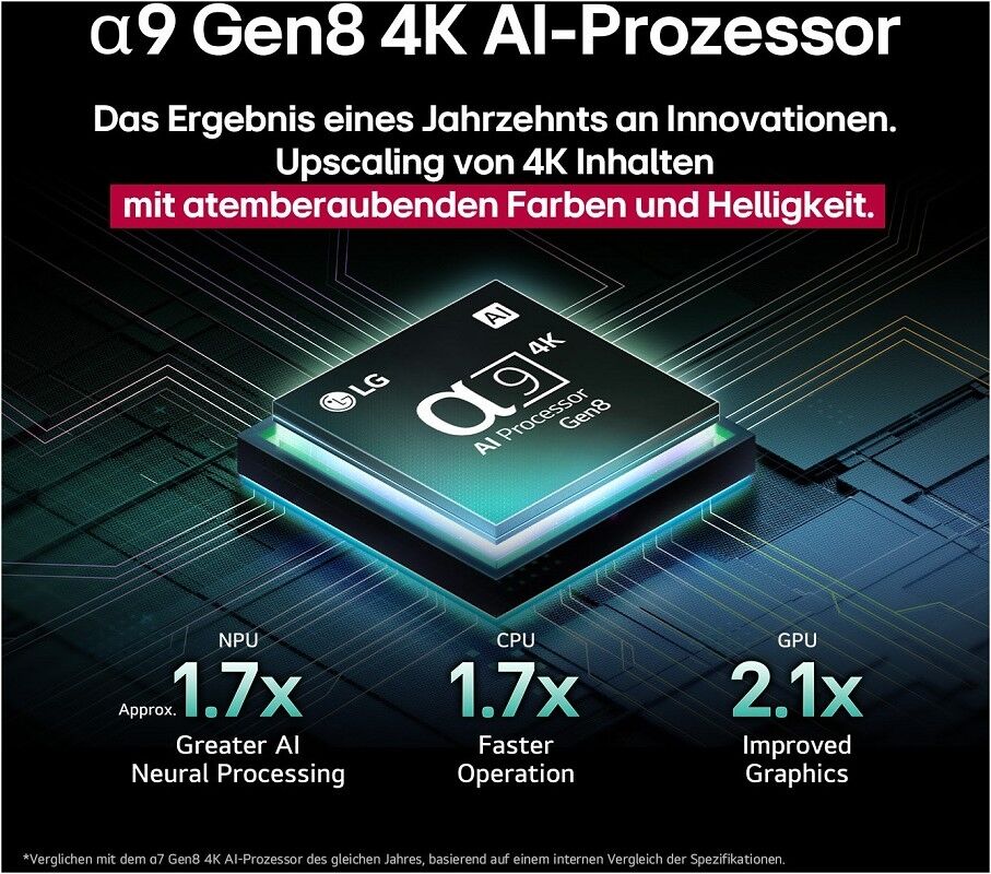 Tauche mit dem LG OLED evo AI TV C5 ein in Bilder, die dank 4K OLED evo Display mit Brightness Booster noch heller erstrahlen und mit perfektem Schwarz und satten Farben überzeugen. Der α9 Gen8 4K AI-Prozessor sorgt dabei automatisch immer für die bestmögliche Bildqualität und einen optimalen Sound. Für Filmfans verwandeln der Filmmaker Ambient Mode mit Raumlichterkennung, Dolby Vision und Dolby Atmos dein Zuhause in ein exklusives Heimkino. Und auch Gamer können ein flüssiges, reaktionsschnelles Gameplay mit bis zu 4K @ 144 Hz, unterstützt durch Nvidia G-Sync und AMD FreeSync genießen. Die übersichtliche webOS 25 Oberfläche und die AI Magic Remote-Fernbedienung mit "AI Button" machen die Bedienung zum Kinderspiel. Kein langes Suchen, keine komplizierten Menüs – alles ist nur einen Klick entfernt.