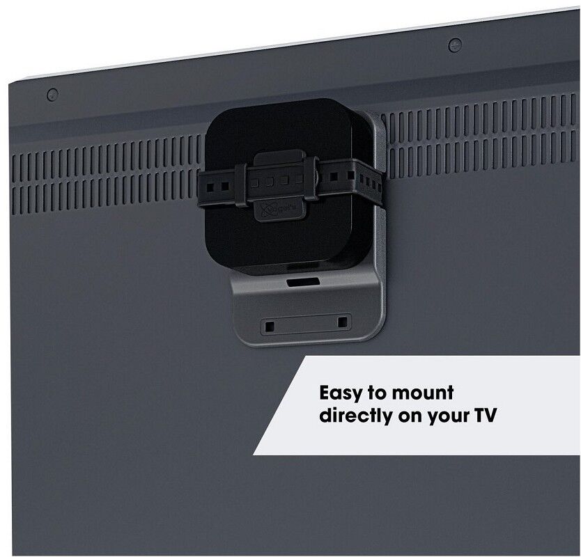 Die Media-Box-Halterung kann auf drei Arten einfach hinter dem Fernseher installiert werden: direkt am Fernseher, an der TV-Wandhalterung oder an der Wand. Das Produkt besteht aus einem robusten ABS-Kunststoff mit einem flexiblen Universalband und enthält keine Metallteile, damit Funkwellen davon nicht beeinträchtigt werden.